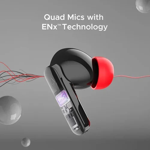 The boAt Airdopes Ultra Plus features a compact, stemmed design with an IPX5 rating for water and sweat resistance. Equipped with 10mm drivers and 4-MIC ENx technology, it delivers quality sound and reduces background noise during calls. With Bluetooth 5.3, the earbuds offer a 10-meter range and up to 50 hours of total playback time, with a quick 5-minute charge providing 60 minutes of use. The earbuds also include a Beast Mode for low latency, making them suitable for gaming.